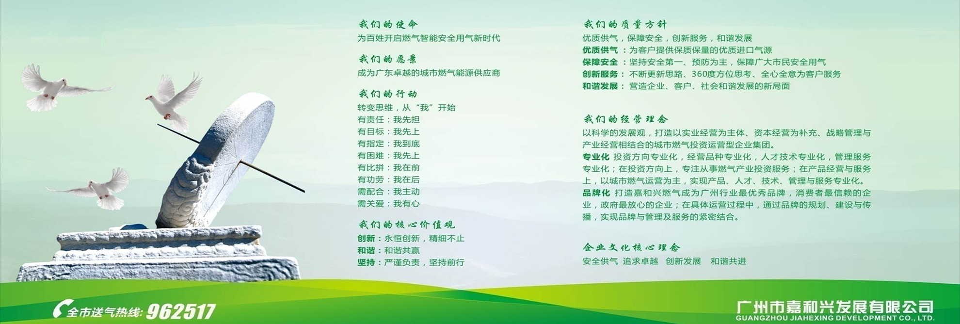 公司在廣州經營多年的液化氣的過程中,積累了大量的行業(yè)資源,積極配合政府管理及倡導行業(yè)溝通協(xié)調。現(xiàn)在“嘉和興”已成為廣州液化氣市場的著名品牌。